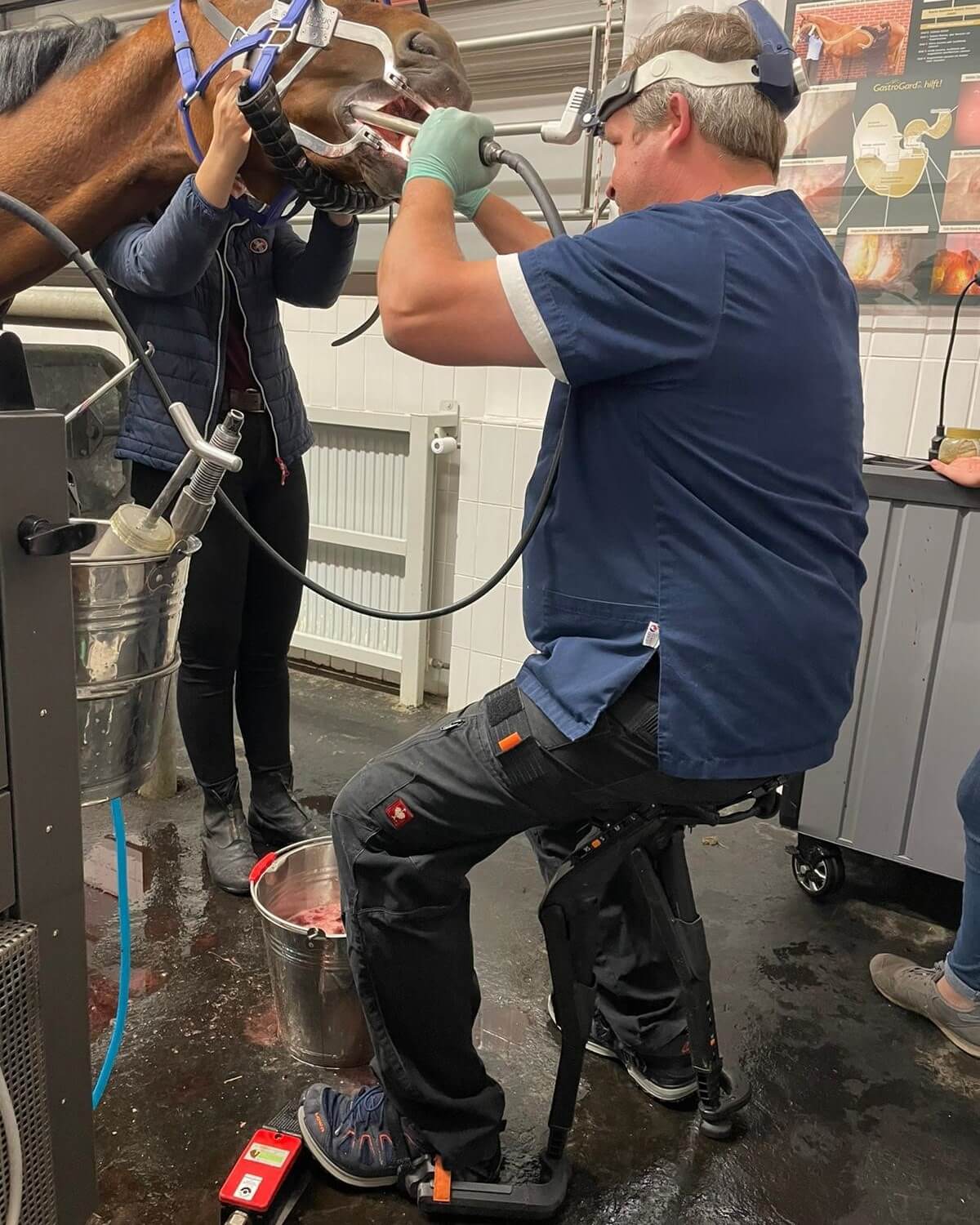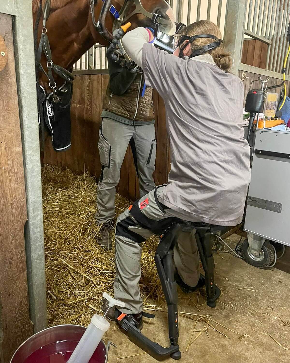 The Chairless Chair supports you when performing activities in an uncomfortable, bent position and allows you to quickly switch between walking, standing, and sitting.